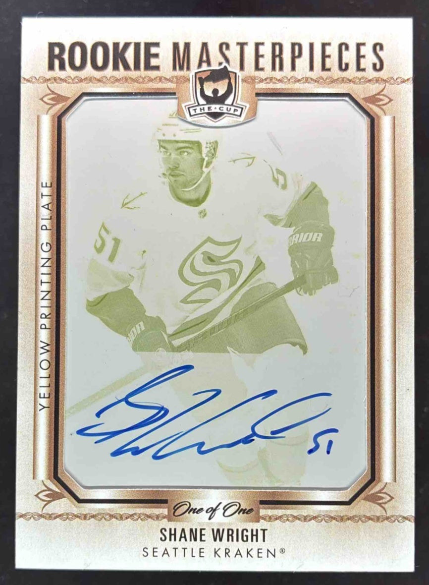 2022 The Cup Rookie Masterpiece Printing Plates Yellow Shane Wright RC Auto 1/1