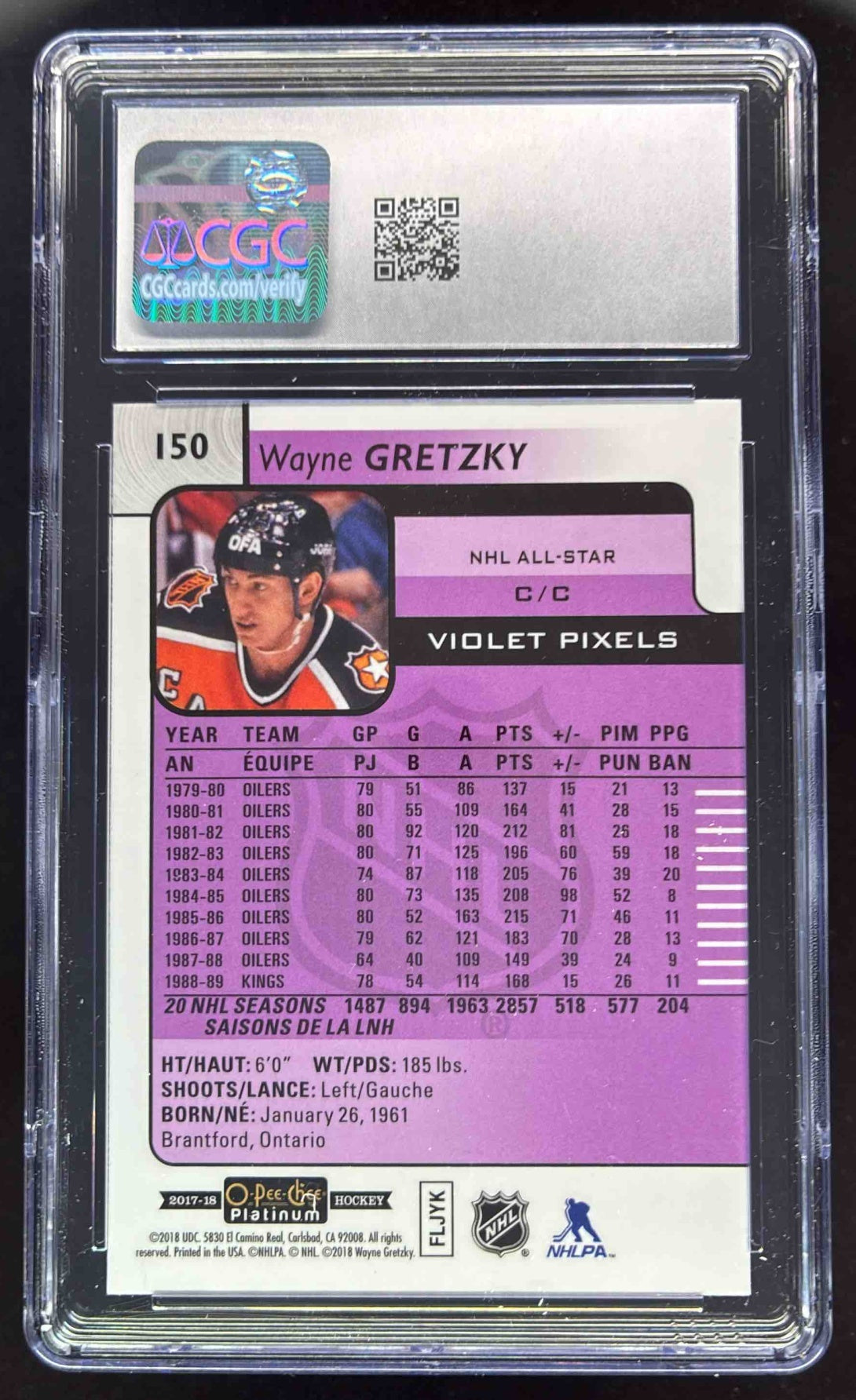 2017-18 O-Pee-Chee Platinum Violet Pixels #150 Wayne Gretzky CGC 8
