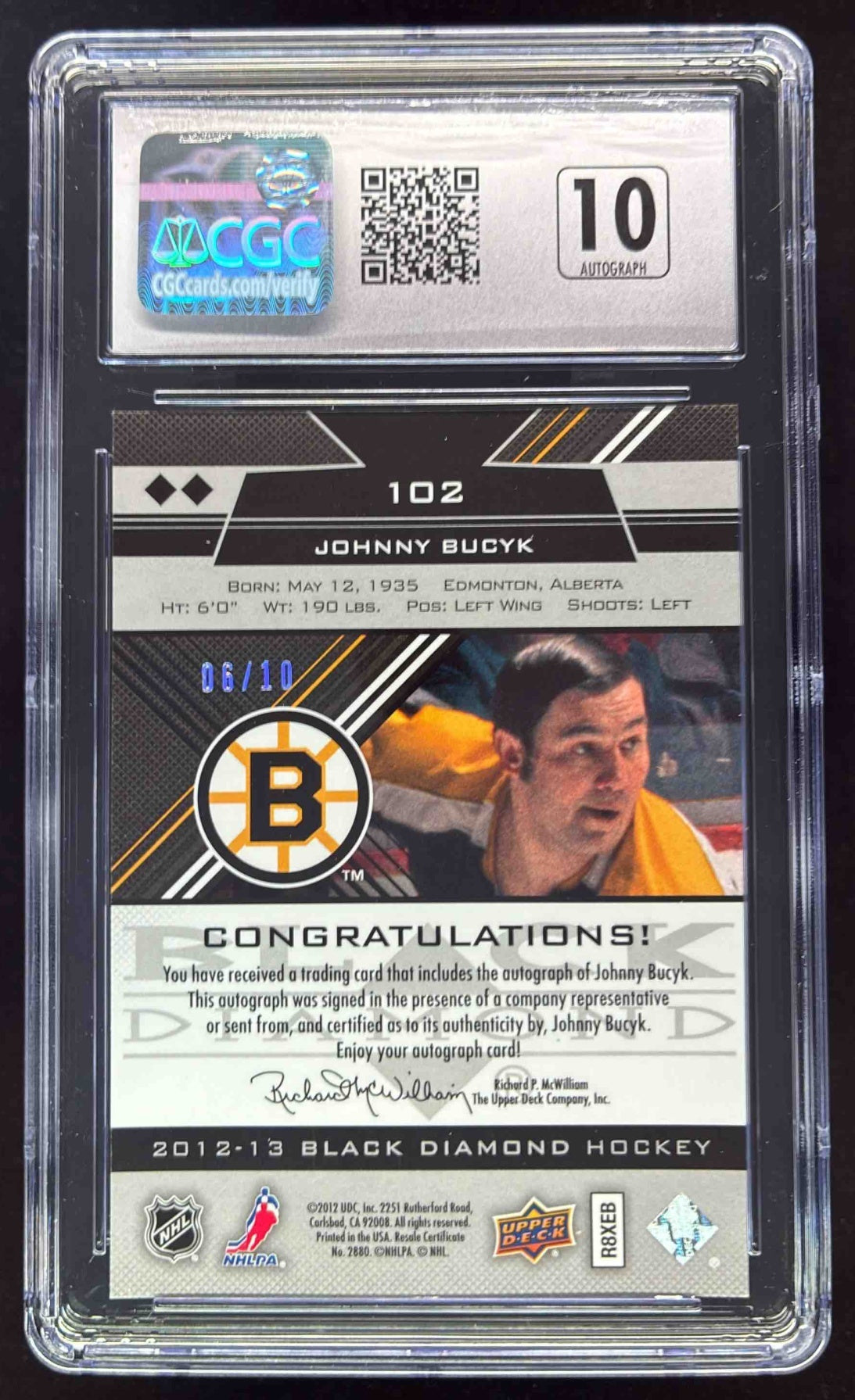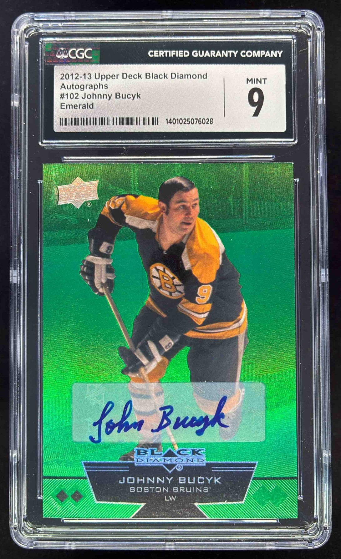 2012 Upper Deck Black Diamond Emerald #102 Johnny Bucyk Autograph Auto /10 CGC 9
