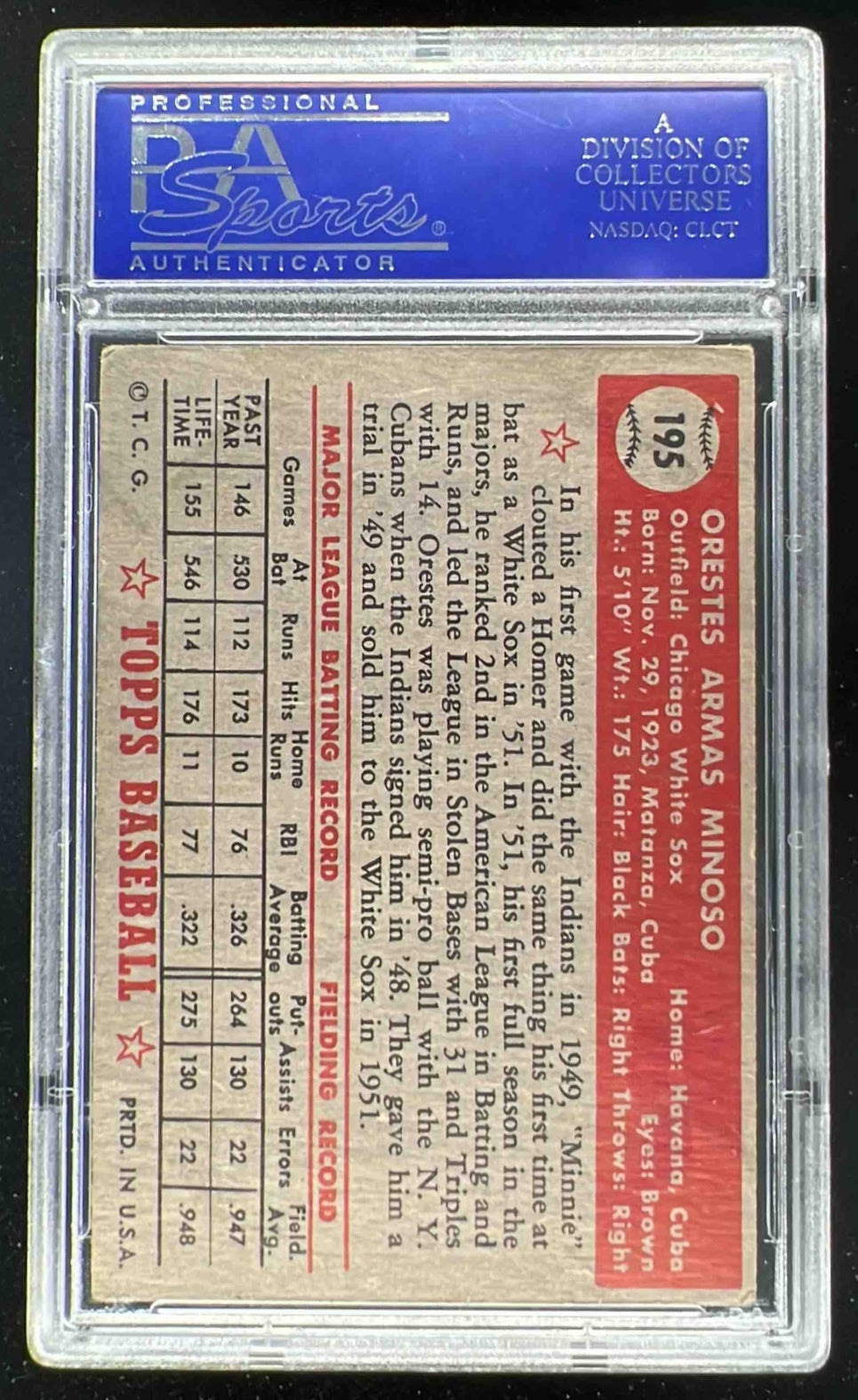 1952 Topps #195 Orestes Minoso UER RC PSA 4