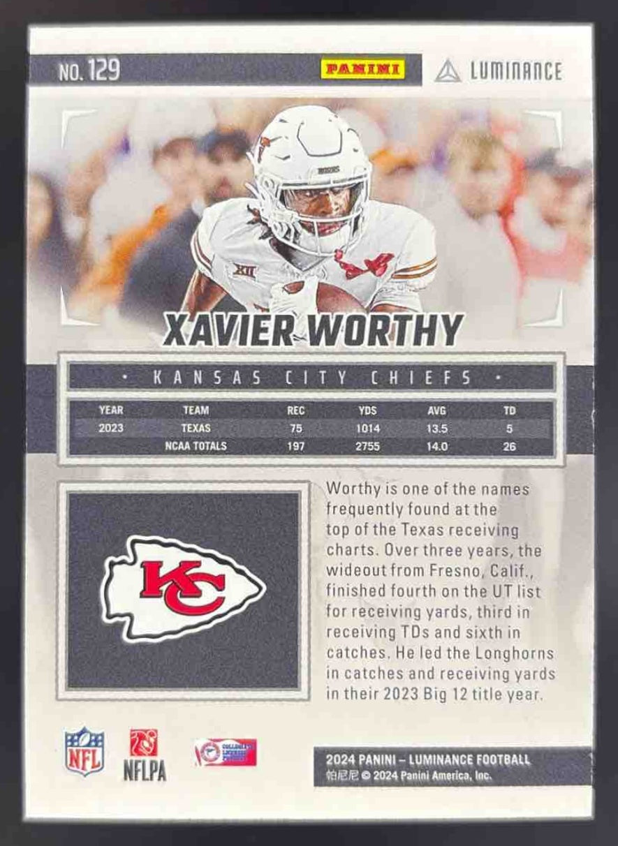 2024 Panini Luminance Orange #129 Xavier Worthy RC /50