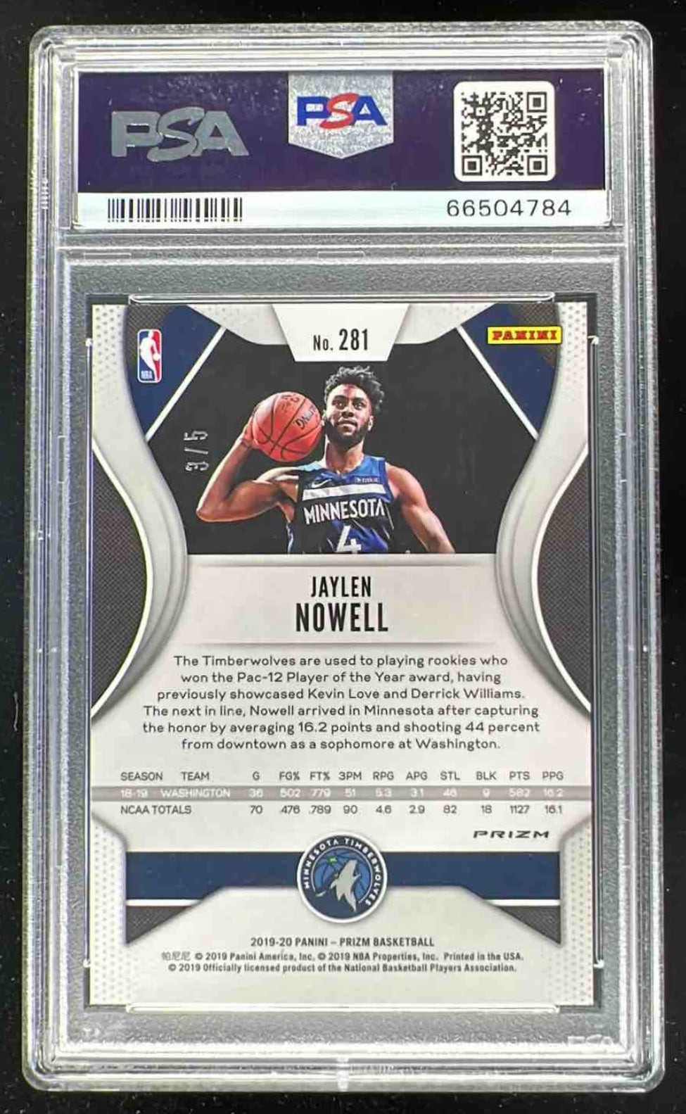 2019-20 Panini Prizm Prizms Black Gold #281 Jaylen Nowell RC /5 PSA 10