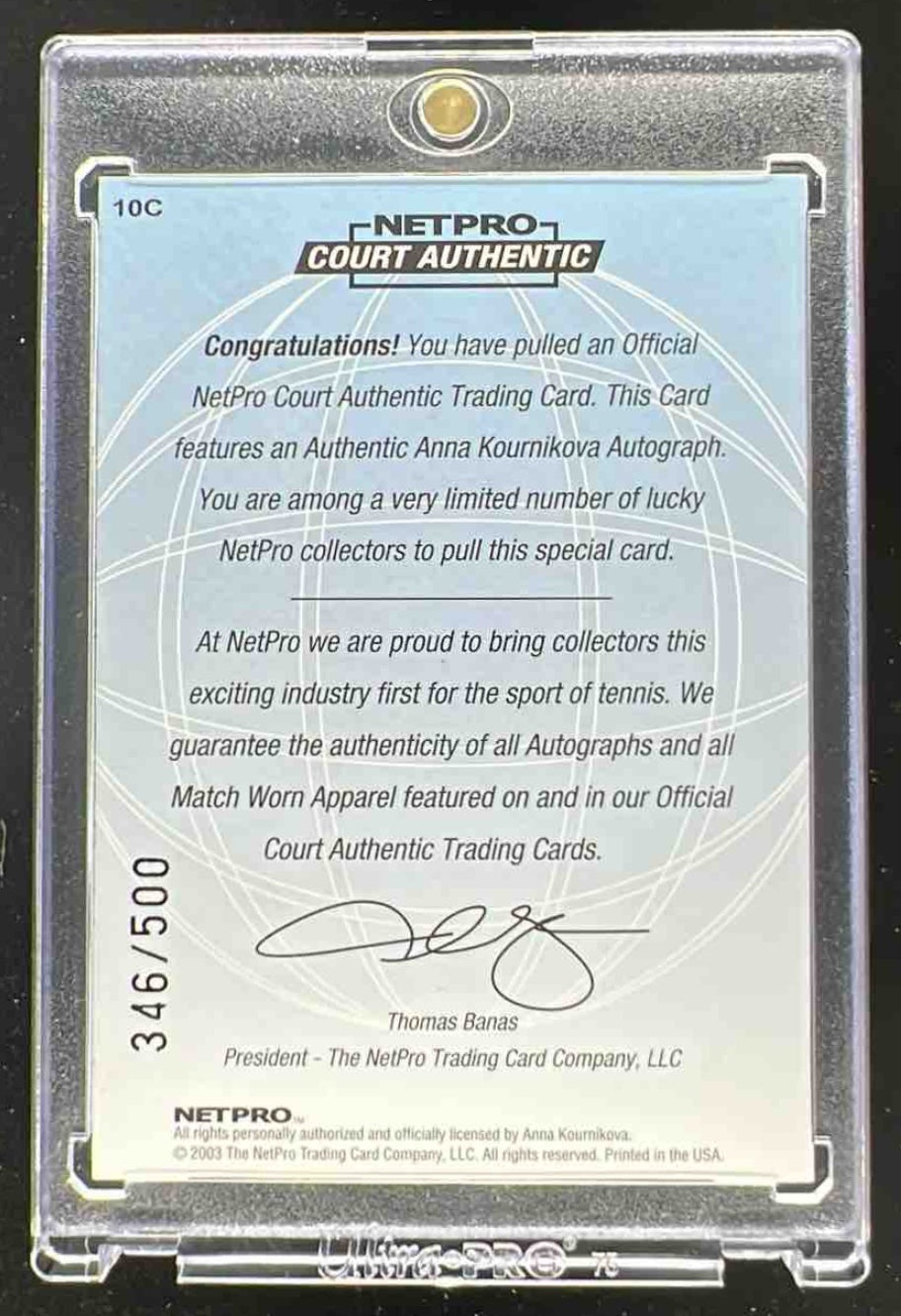 2003 Netpro International Court Authentic Series #10C Anna Kournikova Auto /500