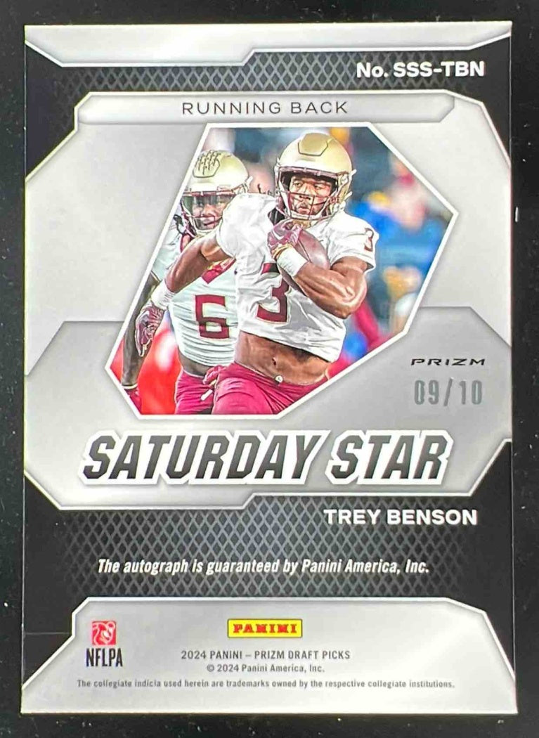 2024 Panini Prizm Collegiate Draft Saturday Star Gold Trey Benson RC Auto /10