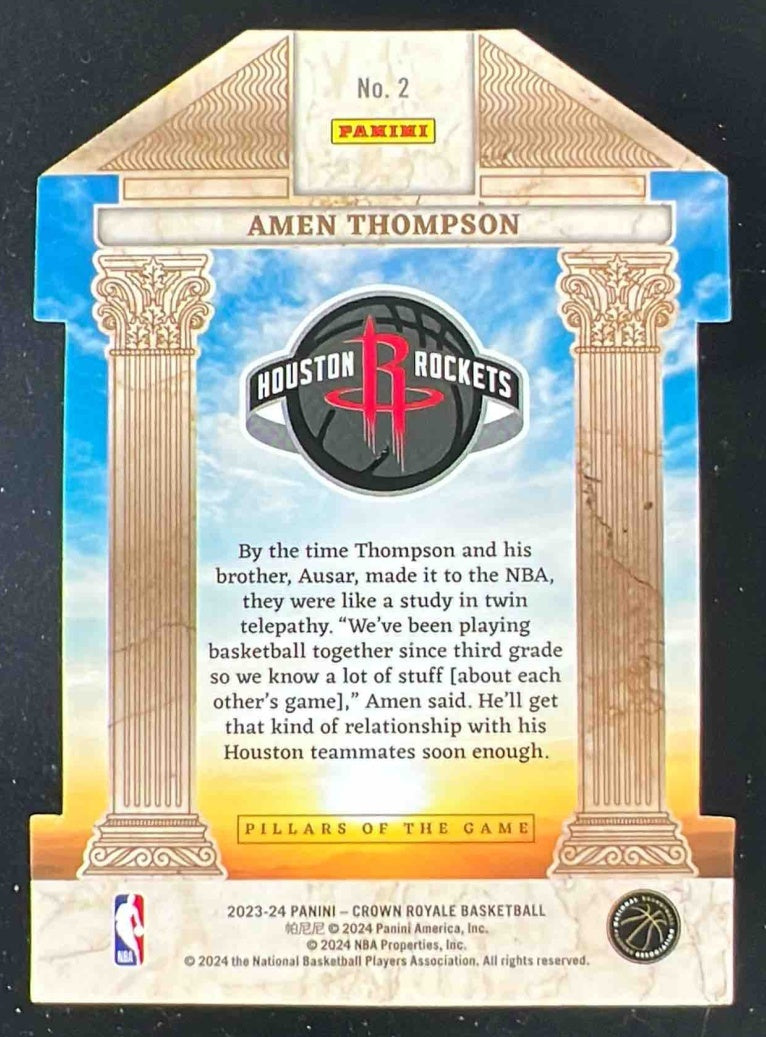 2023-24 Panini Crown Royale Pillars of the Game Gold #2 Amen Thompson RC /10