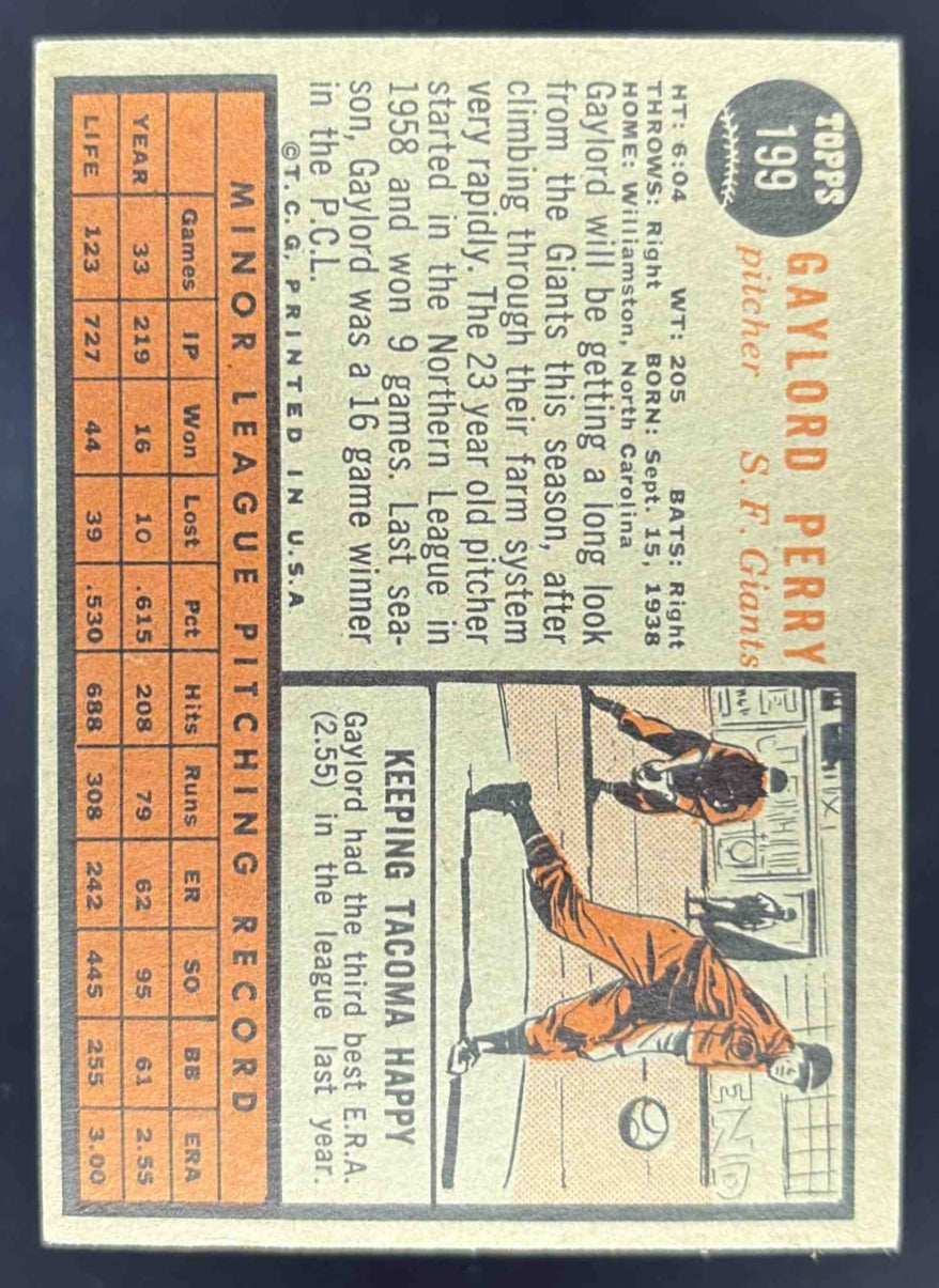 1962 Topps #199 Gaylord Perry RC