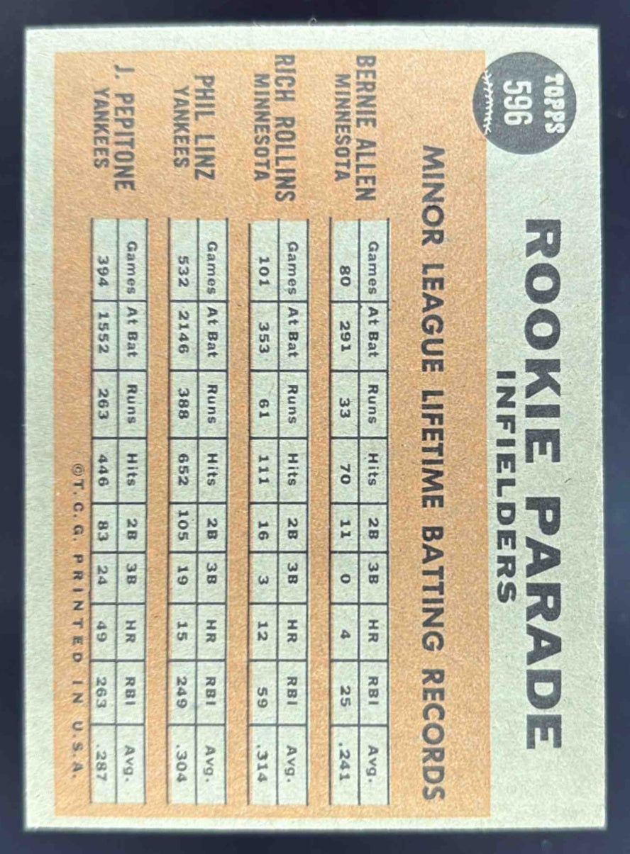 1962 Topps #596 Bernie Allen Rich Rollins Phil Linz Joe Pepitone RC