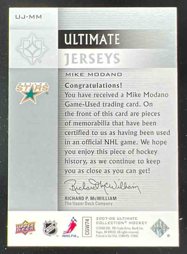 2007-08 Upper Deck Ultimate Collection Ultimate Jerseys #UJ-MM Mike Modano /100