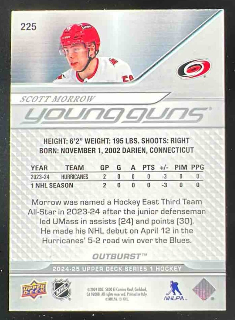 2024-25 Upper Deck Outburst Silver #225 Scott Morrow Young Guns RC
