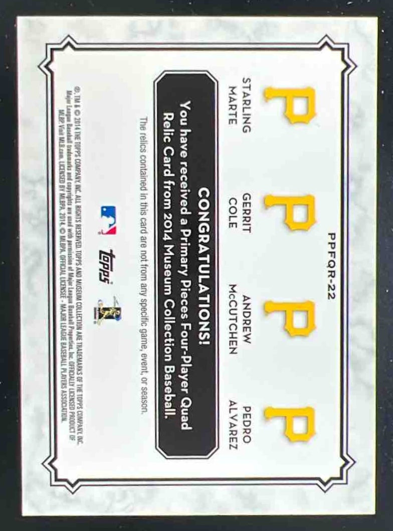 2015 Museum Collection Primary Pieces Quad Relics Copper #GC Gerrit Cole /75