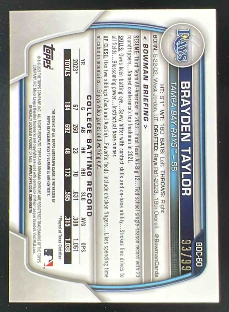 2023 Bowman Chrome Image Variation Autographs #BDC-60 Brayden Taylor Auto /99