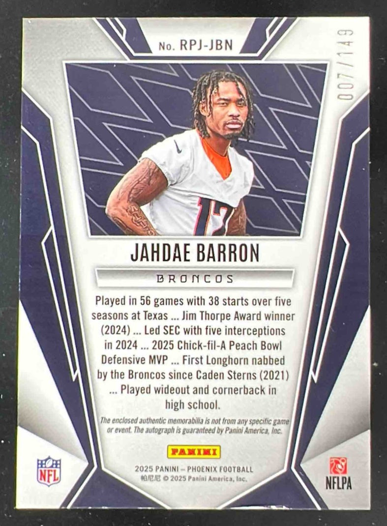 2025 Phoenix Rookie Phenoms Jersey Silver Prizm Jahdae Barron RC Auto /149