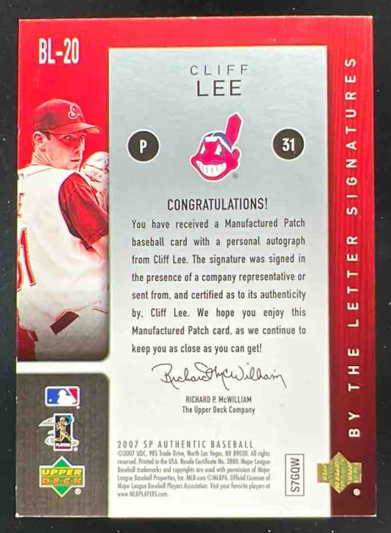 2007 SP Authentic By the Letter Signatures Cliff Lee Autograph VAR Auto /75