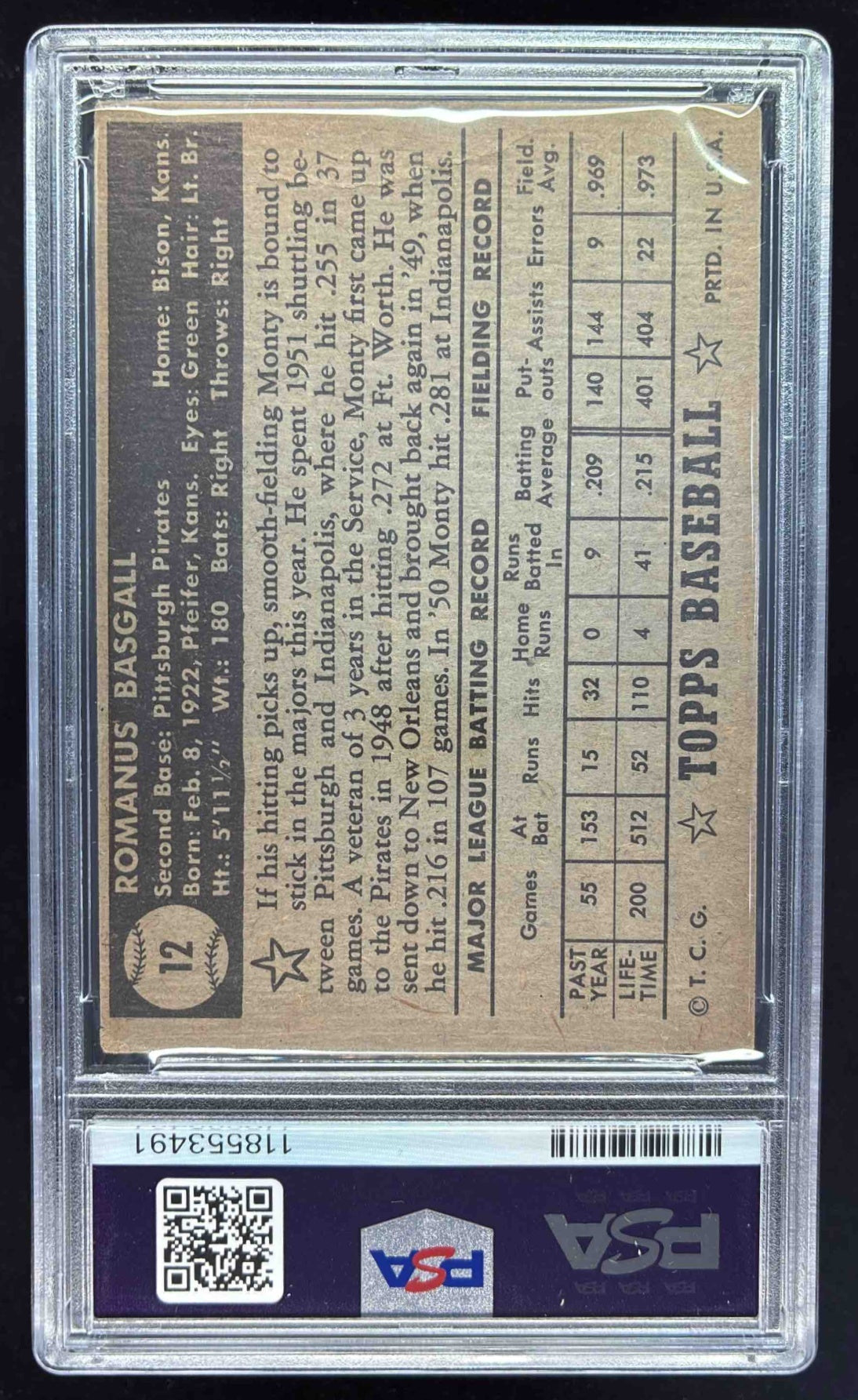 1952 Topps #12 Monty Basgall RC PSA 1
