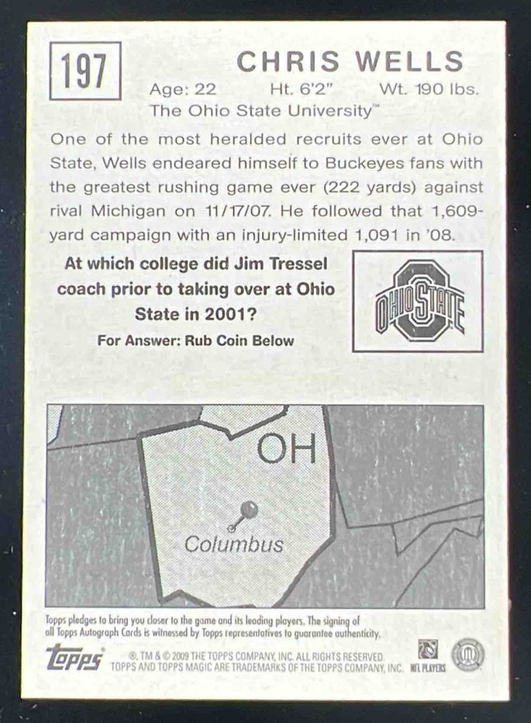 2009 Topps Magic #197 Chris Wells Rookie Autograph RC Auto