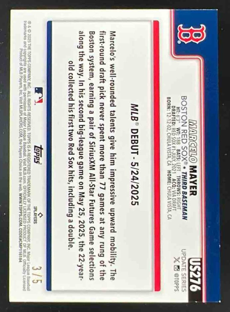 2025 Topps Update Holiday Witches Hat #US276 Marcelo Mayer RC Rookie Debut /5