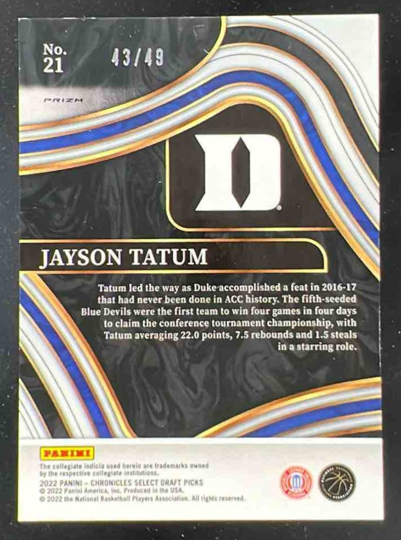 2022-23 Panini Chronicles Draft Picks Select Purple #21 Jayson Tatum /49