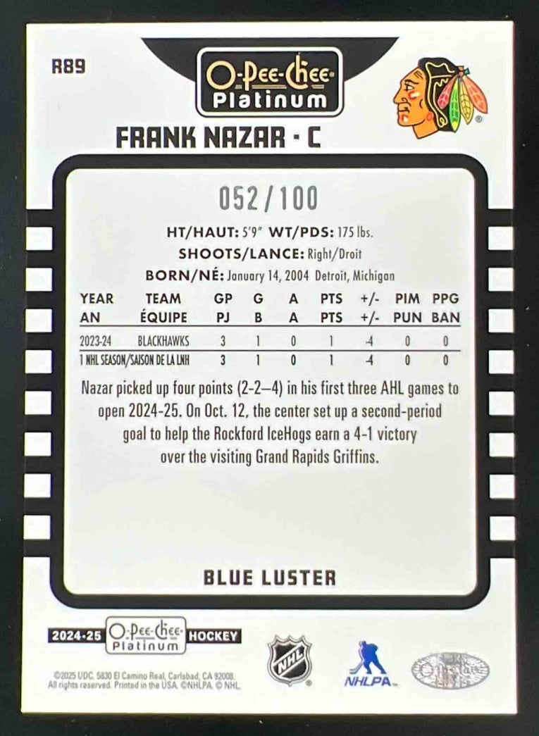 2024-25 O-Pee-Chee Platinum Retro Blue Luster #R89 Frank Nazar /100
