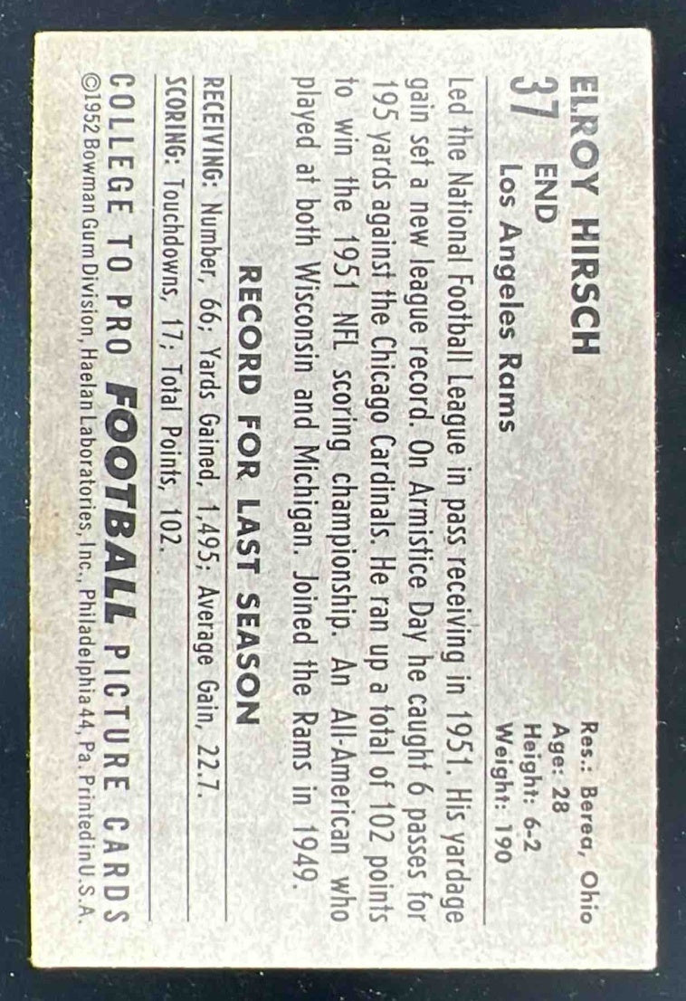 1952 Bowman Large #37 Elroy Hirsch SP