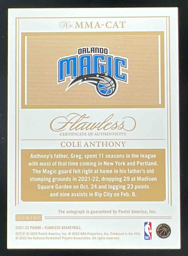 2021-22 Panini Flawless Momentous Autographs #MMA-CAT Cole Anthony Auto /25