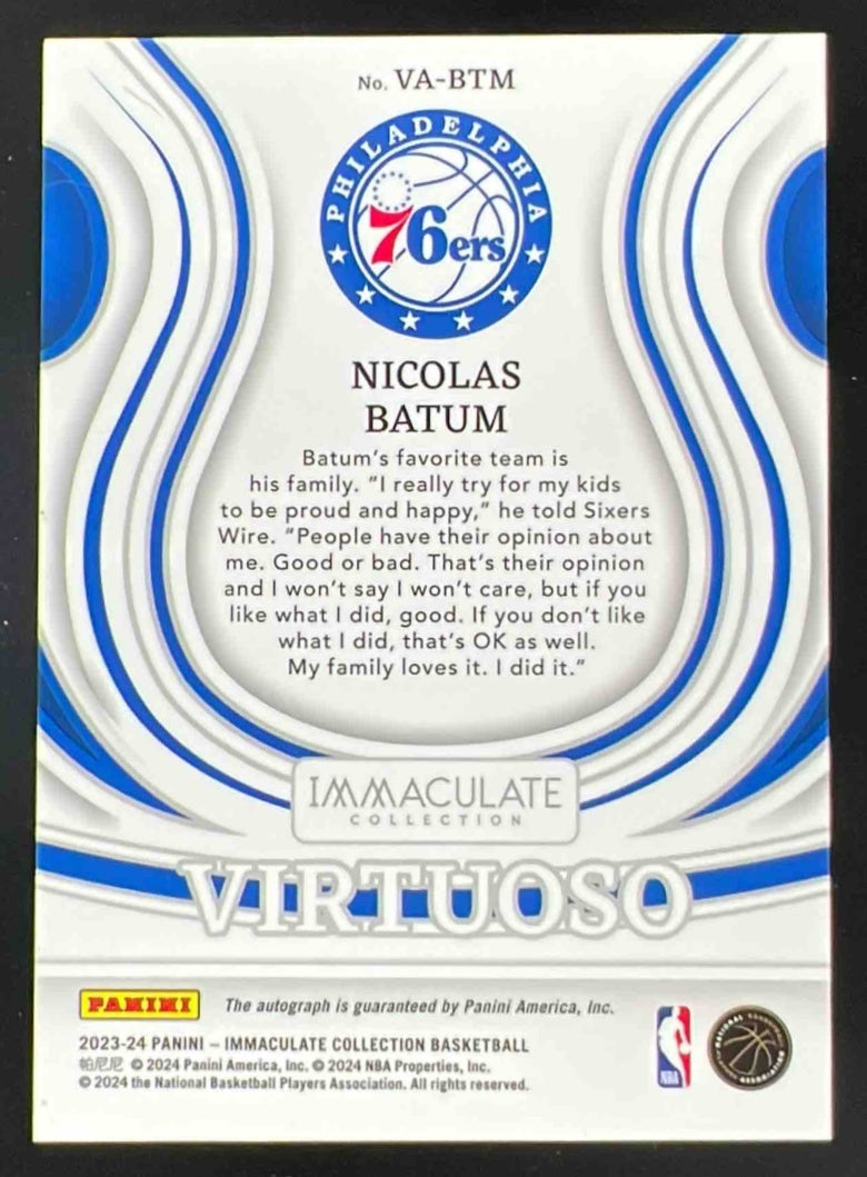 2023-24 Panini Immaculate Virtuoso Autographs #VA-BTM Nicolas Batum Auto /99
