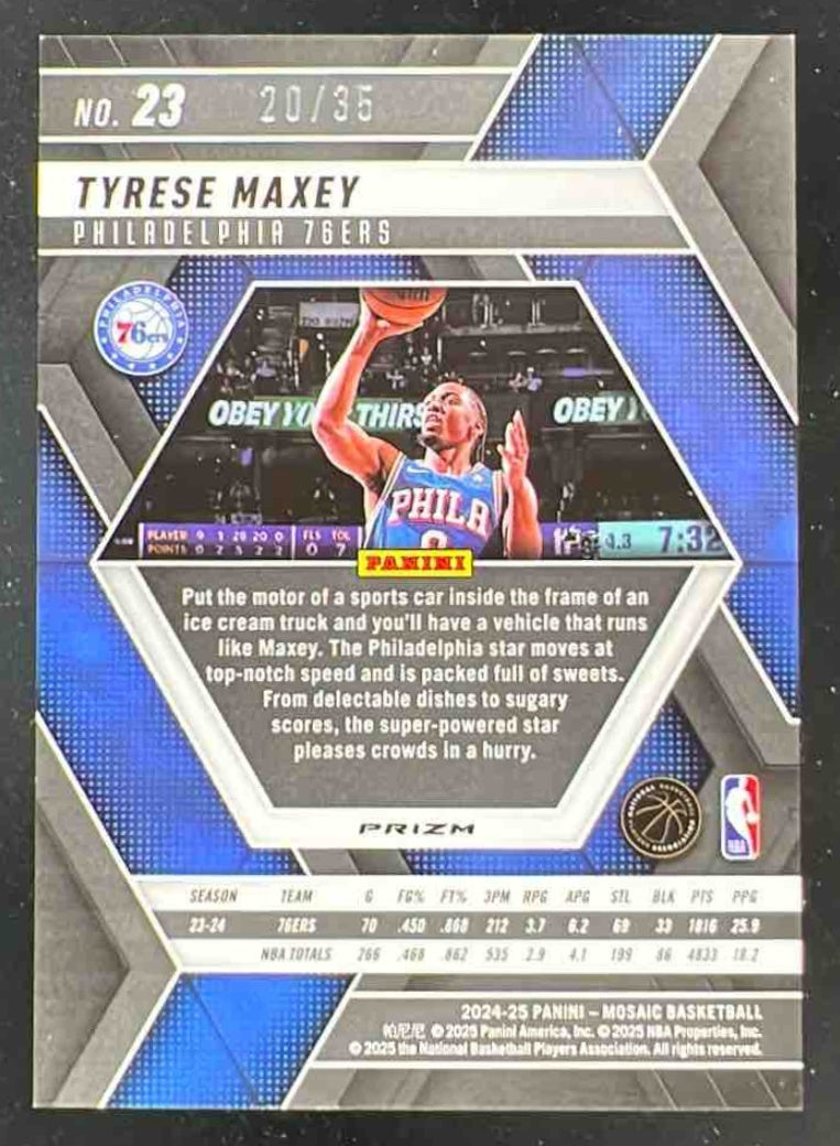 2024-25 Panini Mosaic International Blue Mosaic #23 Tyrese Maxey /35