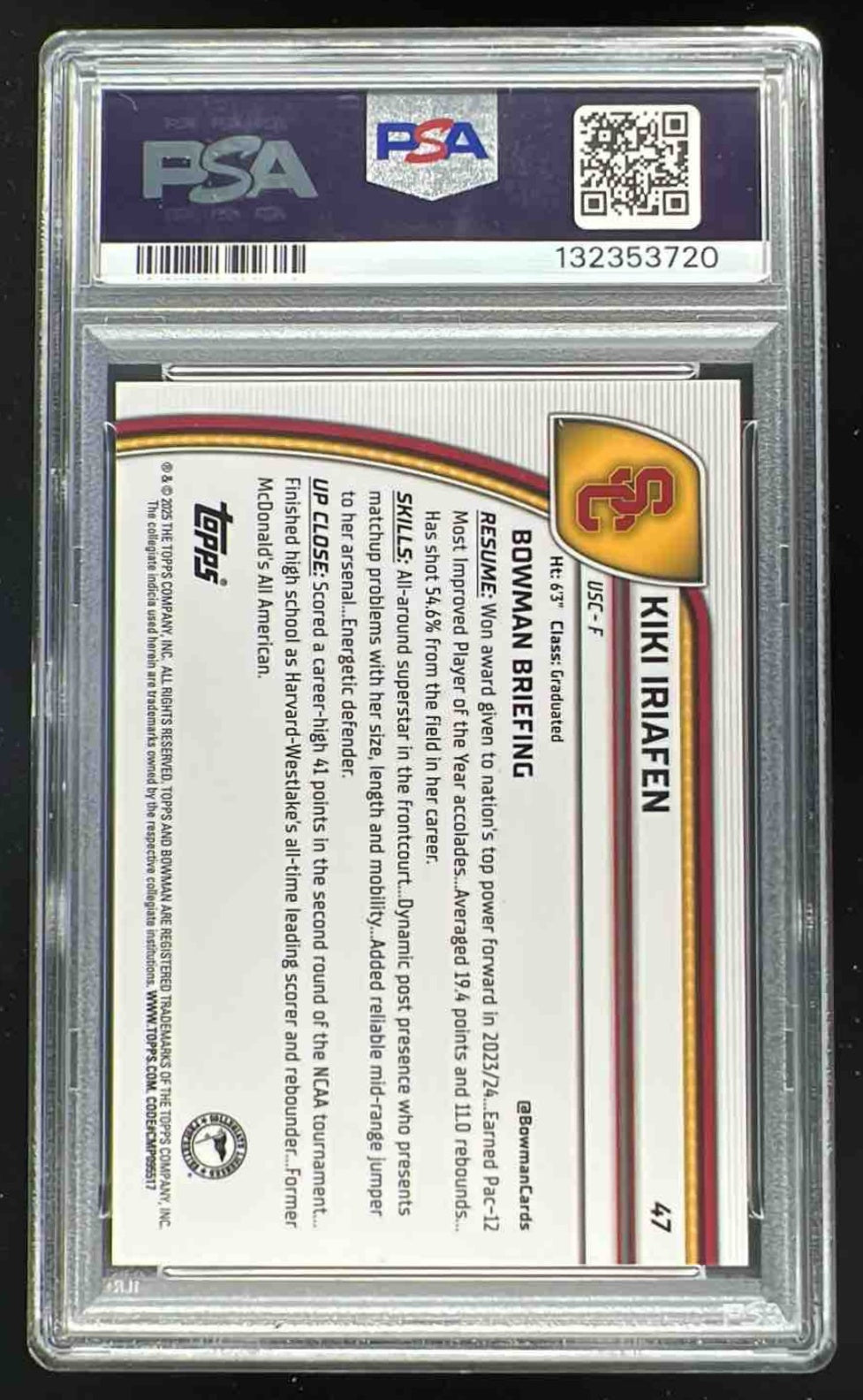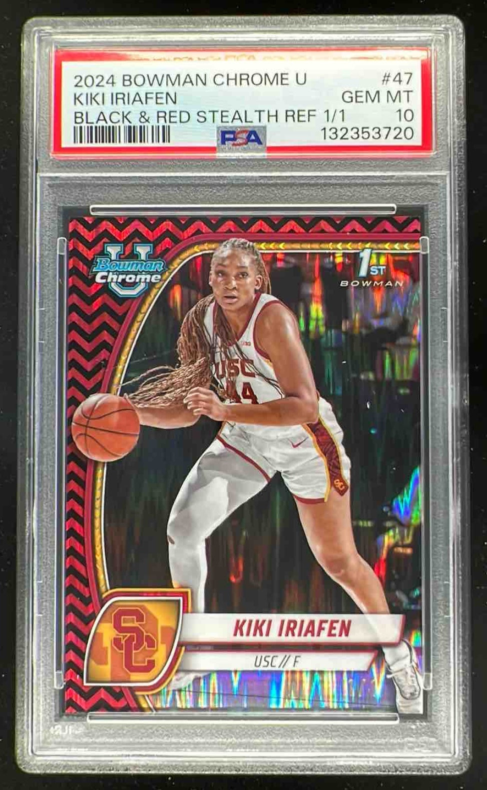 2024-25 Bowman University Chrome Black Red Stealth #47 Kiki Iriafen 1/1 PSA 10