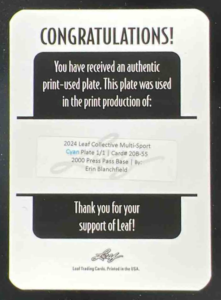 2024 Leaf Collective 2000 Press Pass Cyan Printing Plate Erin Blanchfield 1/1