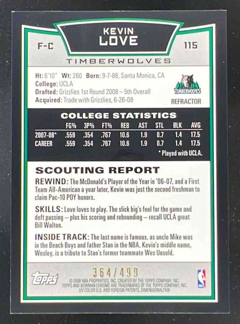 2008-09 Bowman Chrome Refractors #115 Kevin Love RC /499