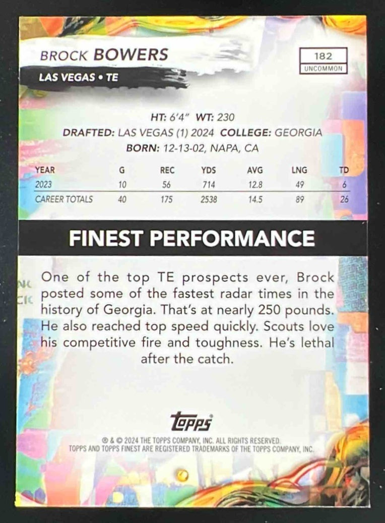 2024 Topps Finest Purple Checkerboard Refractor #182 Brock Bowers RC /99