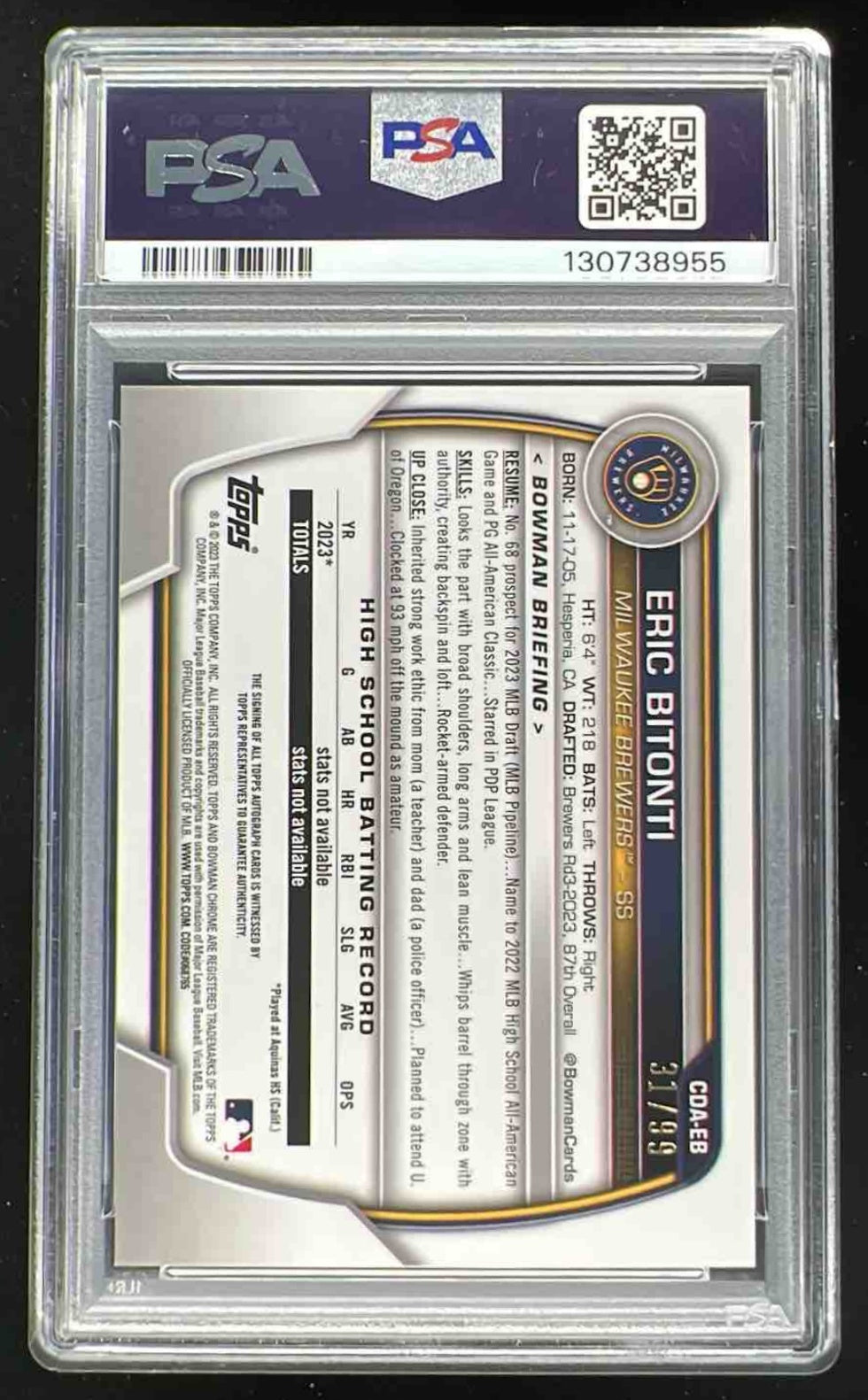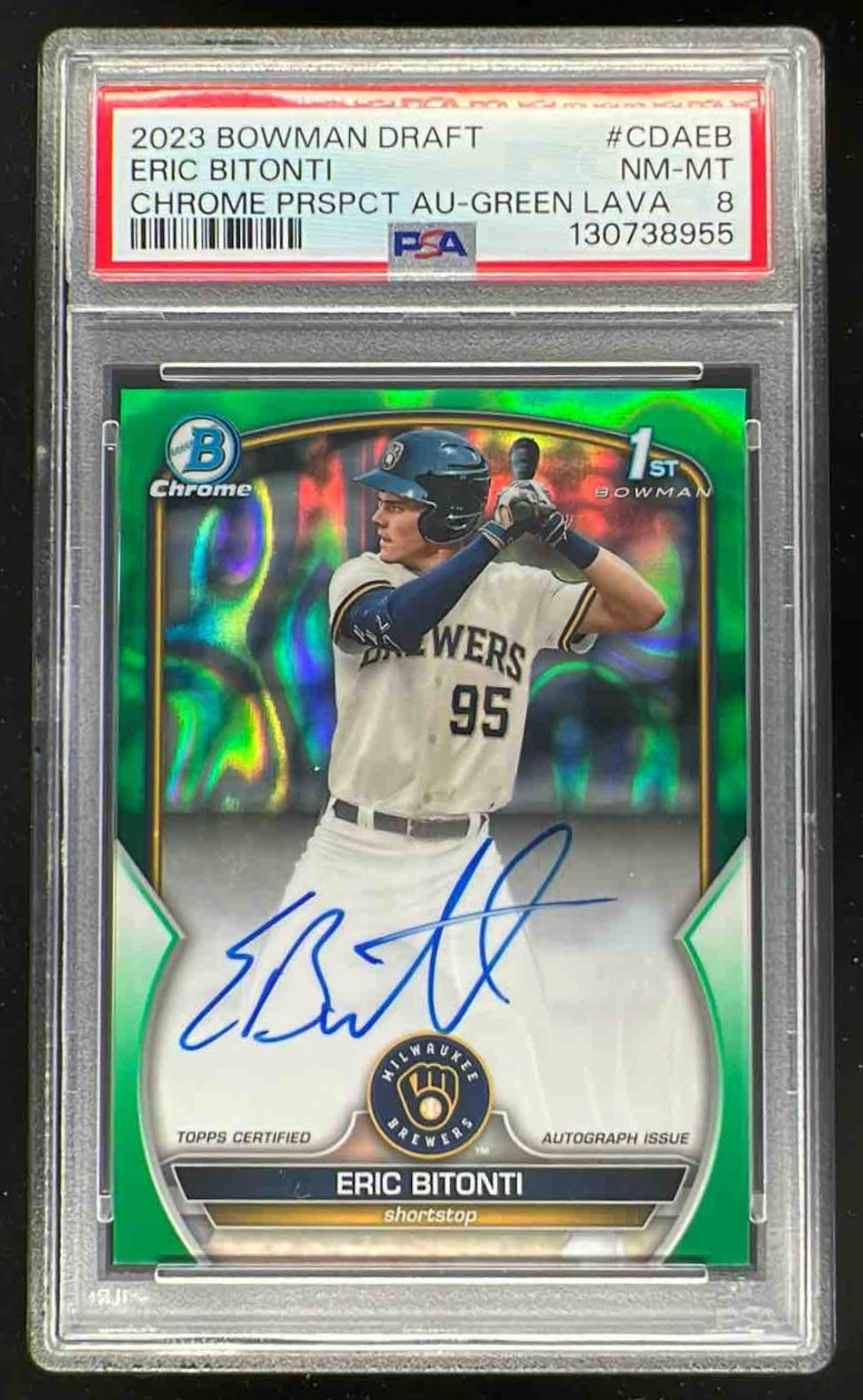 2023 Bowman Draft Chrome Green Lava #CDA-EB Eric Bitonti RC Auto /99 PSA 8