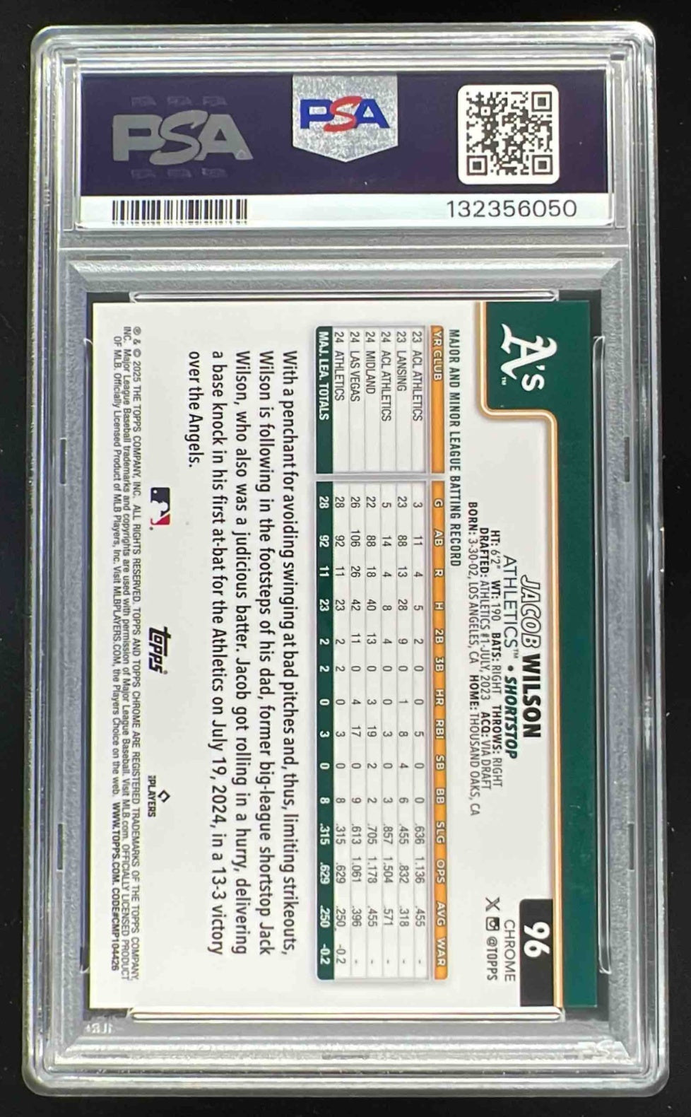 2025 Topps Chrome Gold Wave Refractor #96 Jacob Wilson RC /50 PSA 10