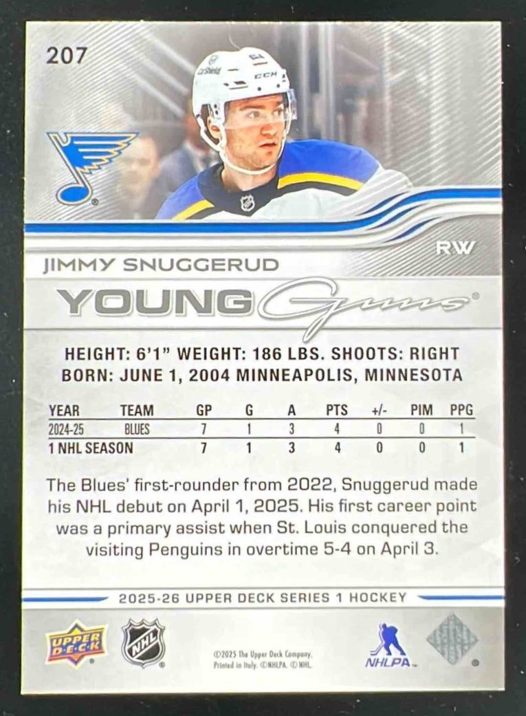 2025 Upper Deck Series 1 #207 Jimmy Snuggerud Young Guns RC