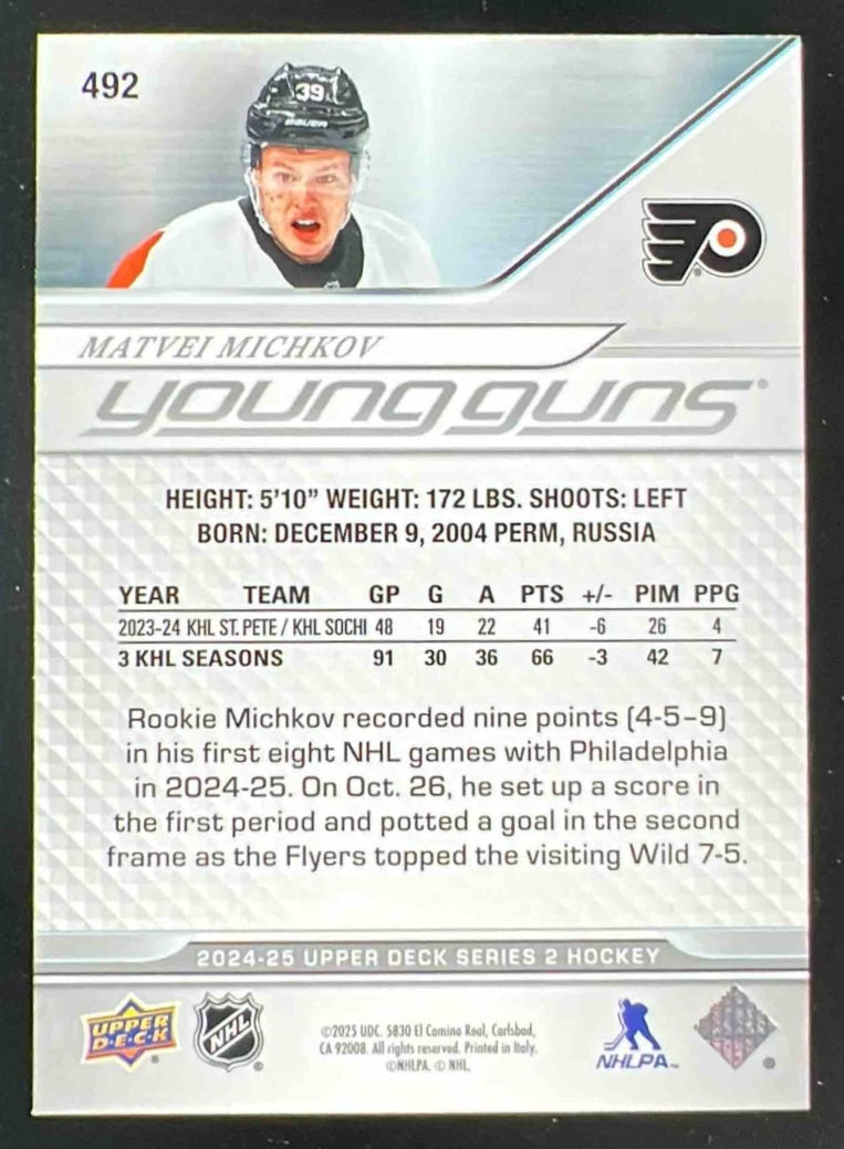 2024-25 Upper Deck #492 Matvei Michkov Young Guns RC