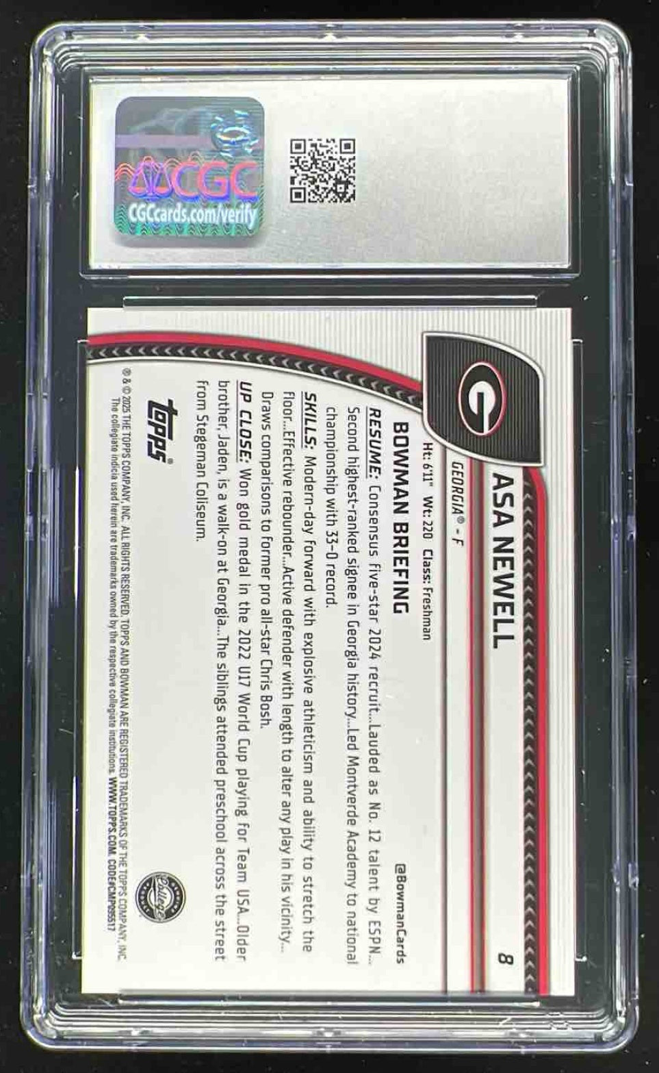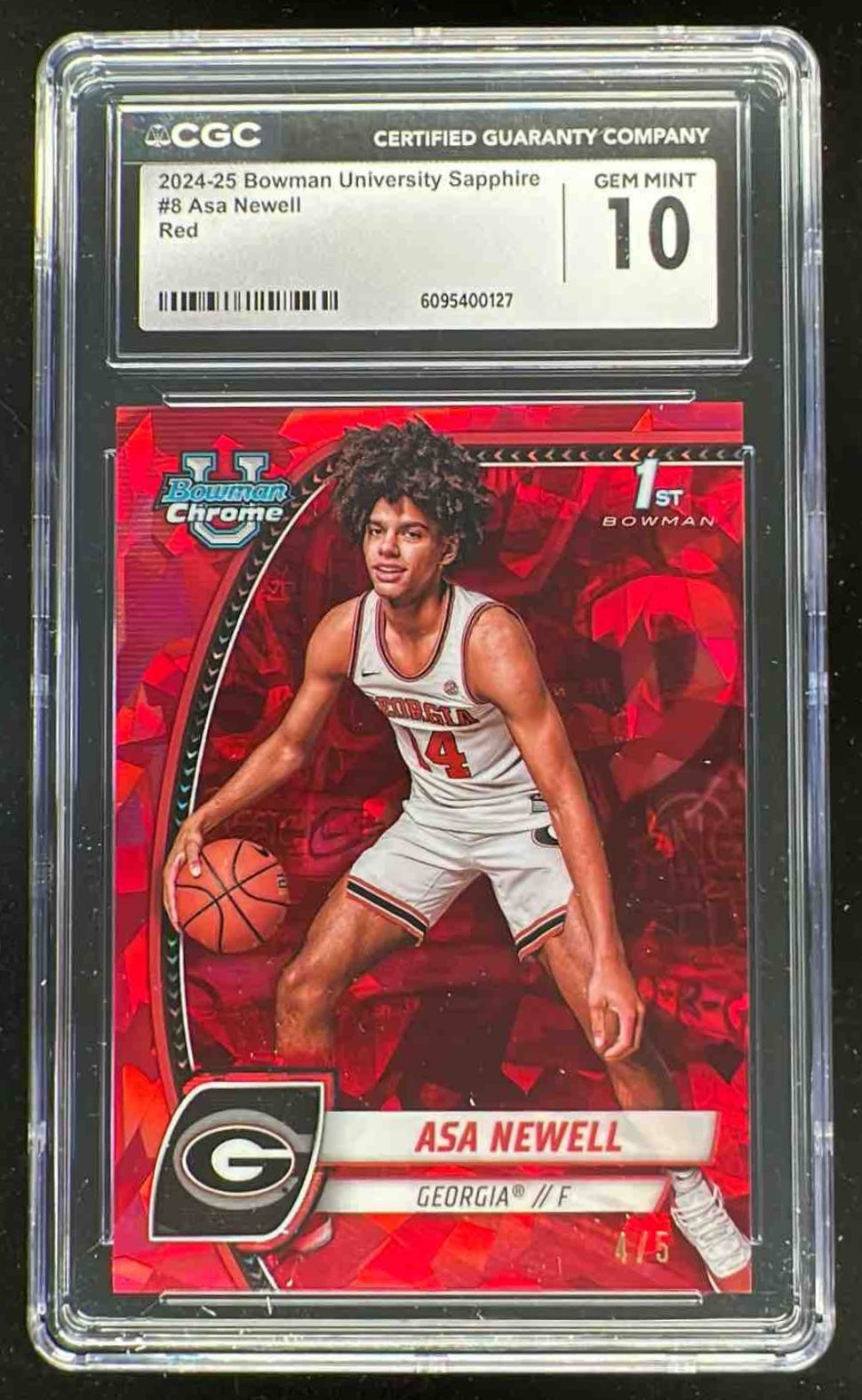 2024-25 Bowman University Chrome Sapphire Red Refractor #8 Asa Newell /5 CGC 10