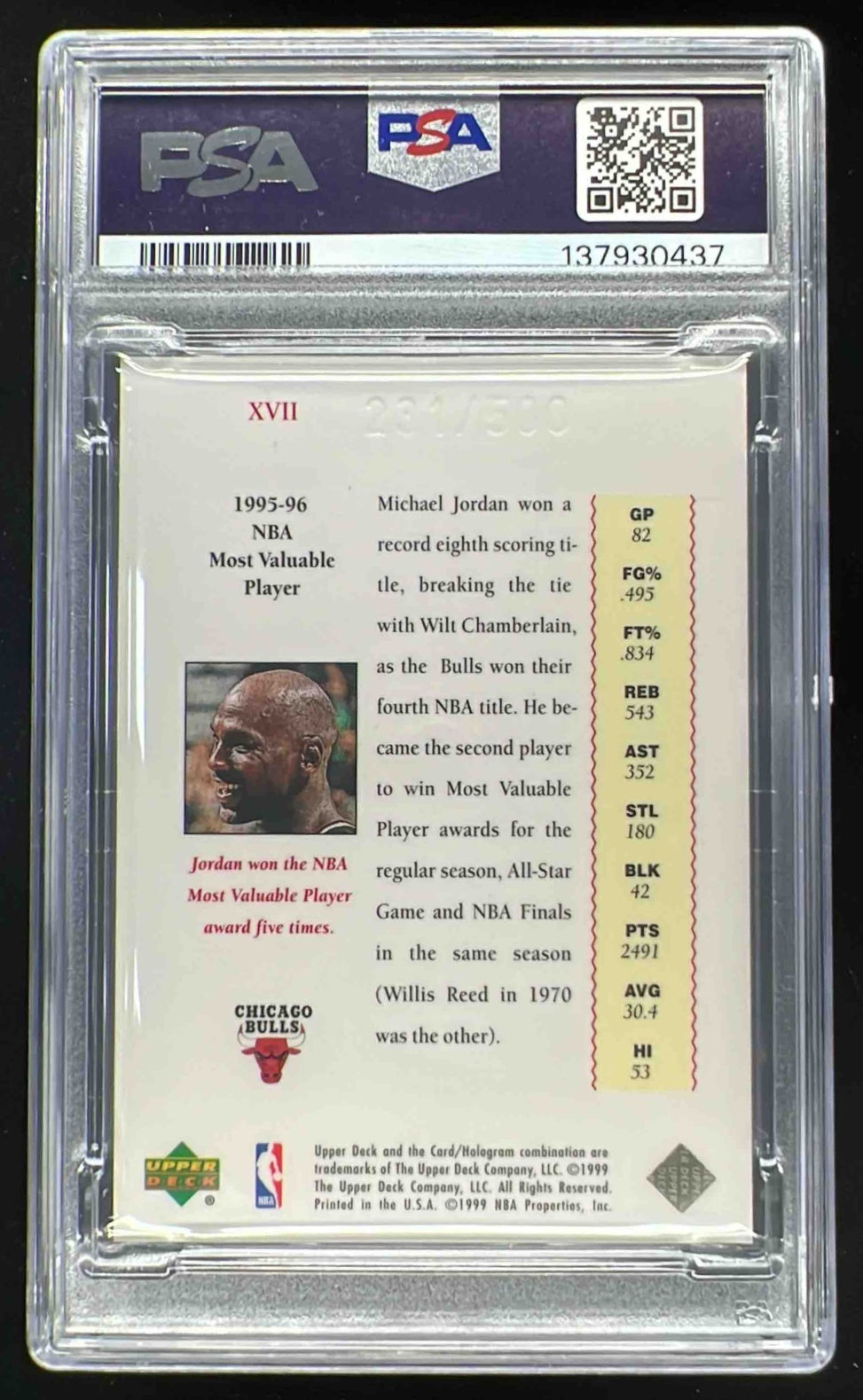 1999 Upper Deck MJ Master Collection #XVII Michael Jordan 95 Season /500 PSA 9