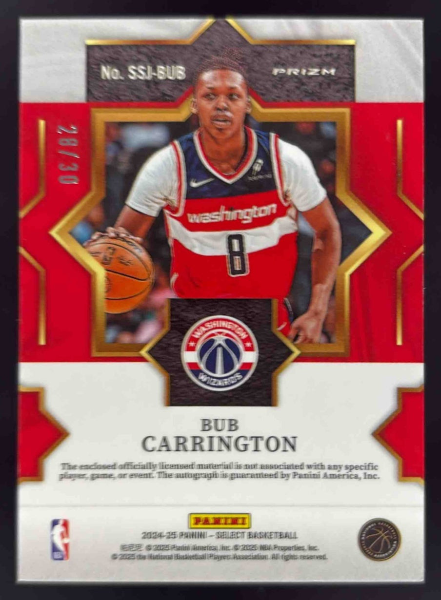 2024-25 Select Select Stars Jersey Red Wave Prizm #19 Bub Carrington Auto /30