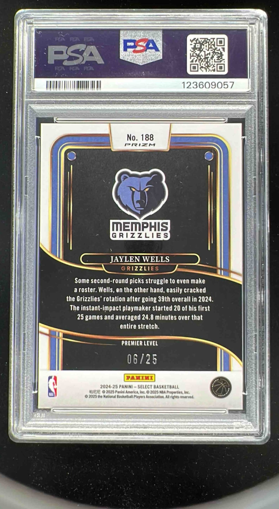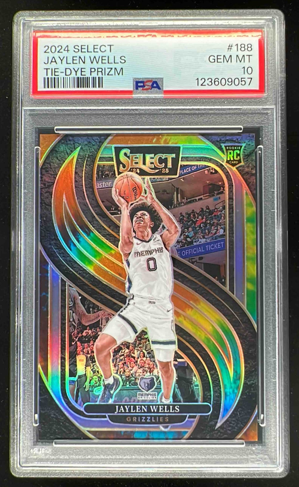 2024-25 Panini Select Premier Tie-Dye Prizm #188 Jaylen Wells RC /25 PSA 10