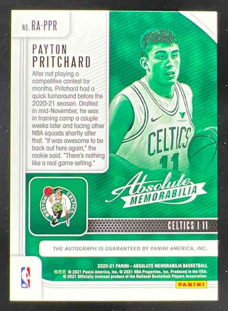 2020-21 Absolute Memorabilia Rookie Level 4 #RA-PPR Payton Pritchard RC Auto /5