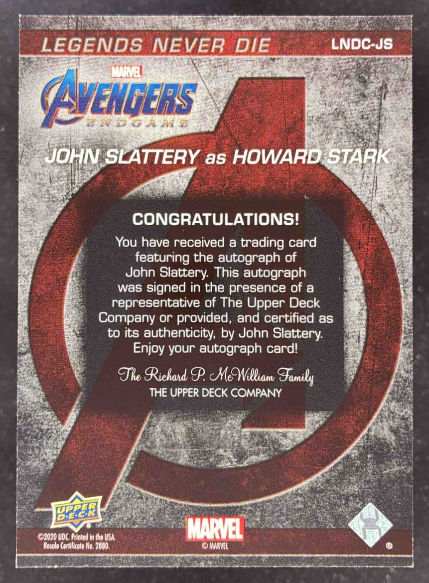 2020 Upper Deck Marvel Avengers Legends Never Die Casual John Slattery Auto