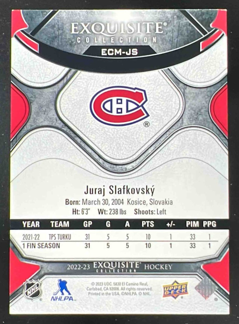 2022 Black Diamond Exquisite Collection Moments #ECM-JS Juraj Slafkovsky RC /299