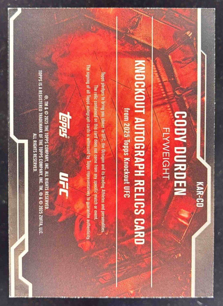 2025 Topps UFC Knockout Knockout Relics #KAR-CD Cody Durden Autograph Auto /199