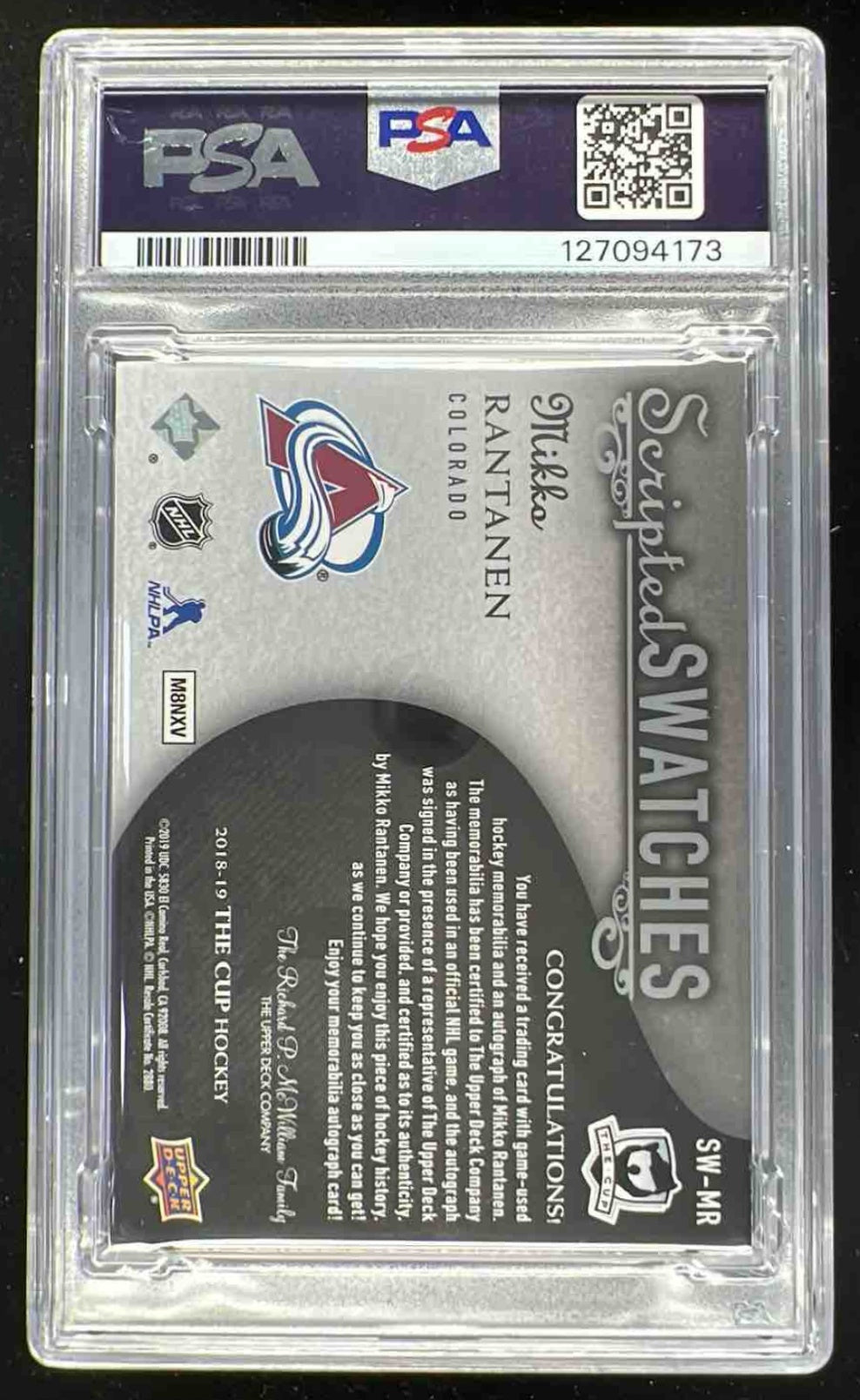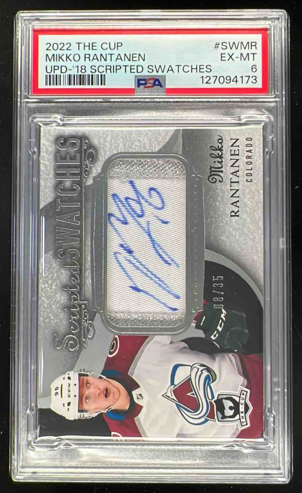 2022-23 Upper Deck The Cup Scripted Swatches #SWMR Mikko Rantanen Auto /35 PSA 6