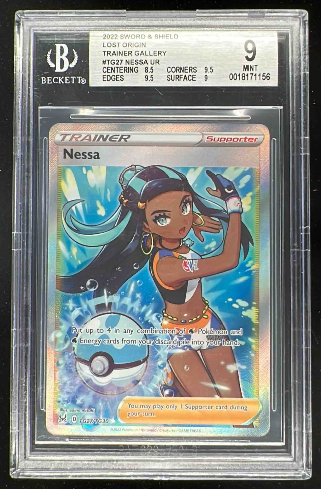 2022 Pokemon Sword & Shield Lost Origin Trainer Gallery #TG27/TG30 Nessa BGS 9