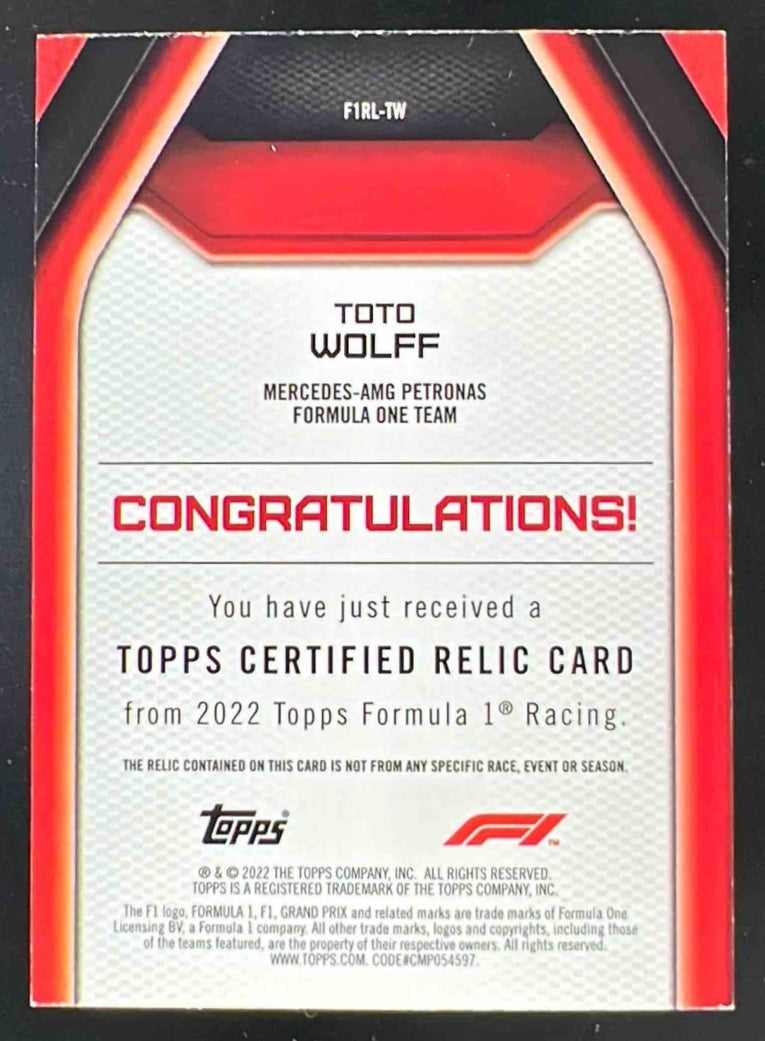 2022 Topps Formula 1 F1 Relics #F1RL-TW Toto Wolff MEM