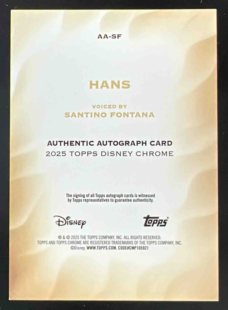 2025 Topps Chrome Disney Authentic Purple Refractor #SF Santino Fontana Auto /75