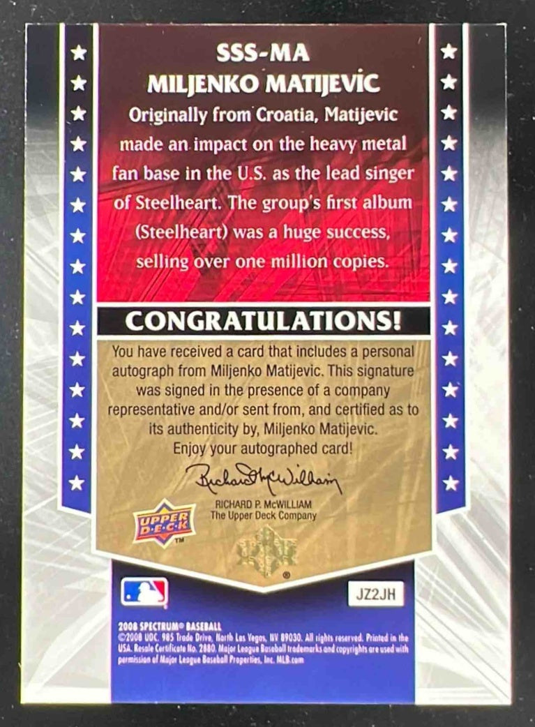 2008 Upper Deck Spectrum Spectrum of Stars Signatures Miljenko Matijevic Auto