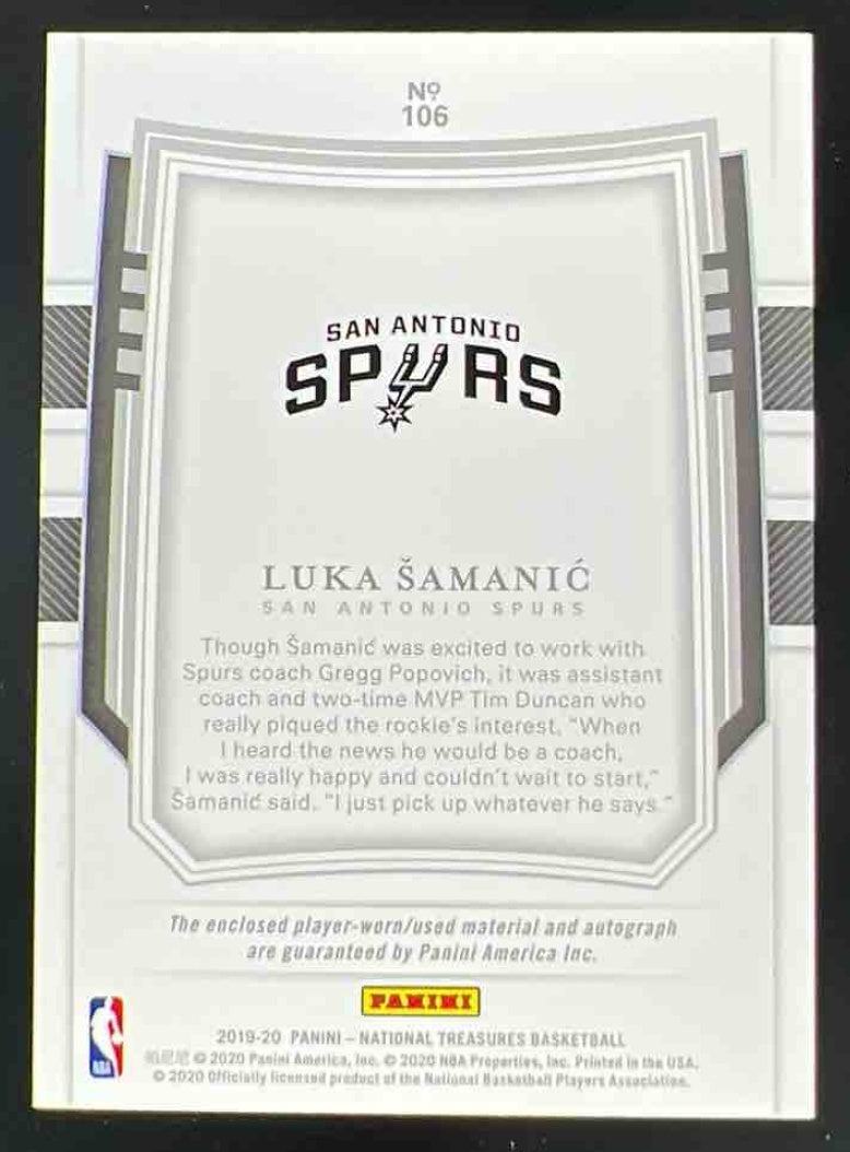 2019-20 Panini National Treasures Gold #106 Luka Samanic RC Auto /10
