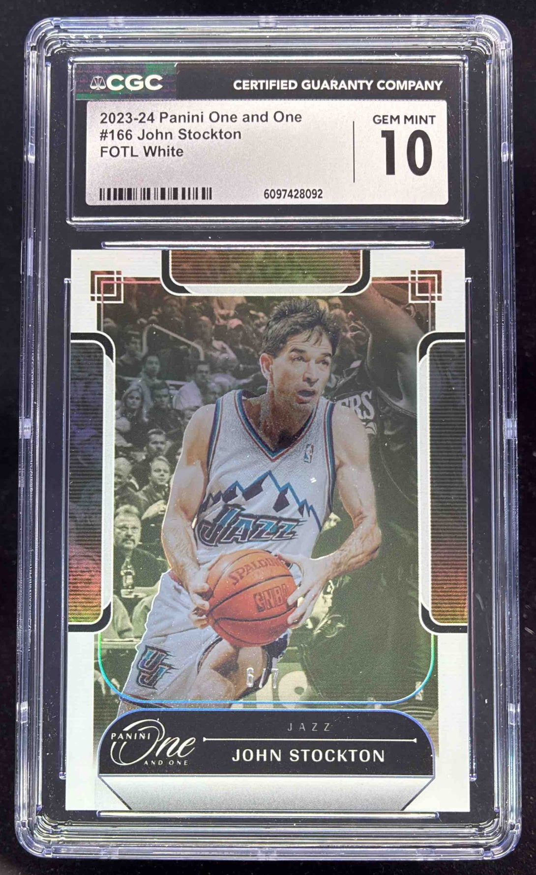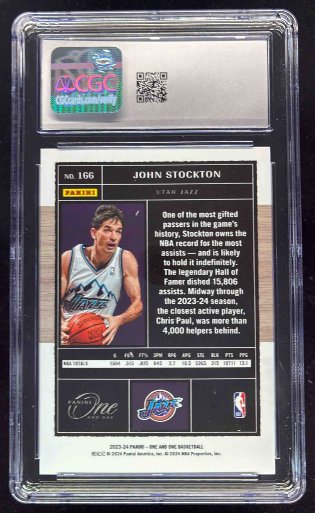 2023-24 Panini One & One Basketball White FOTL #166 John Stockton /7 CGC 10