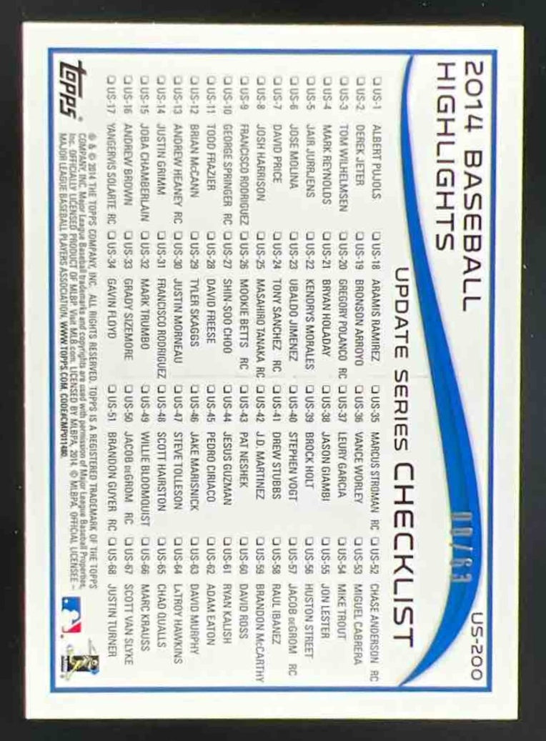 2014 Topps Update Black #US-200 Masahiro Tanaka RC /63